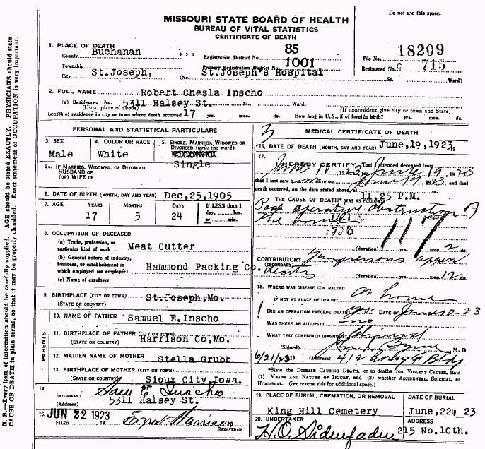 Dec 25, 1905 (St. Joseph, MO) - June 19, 1923 (St. Joseph, MO)